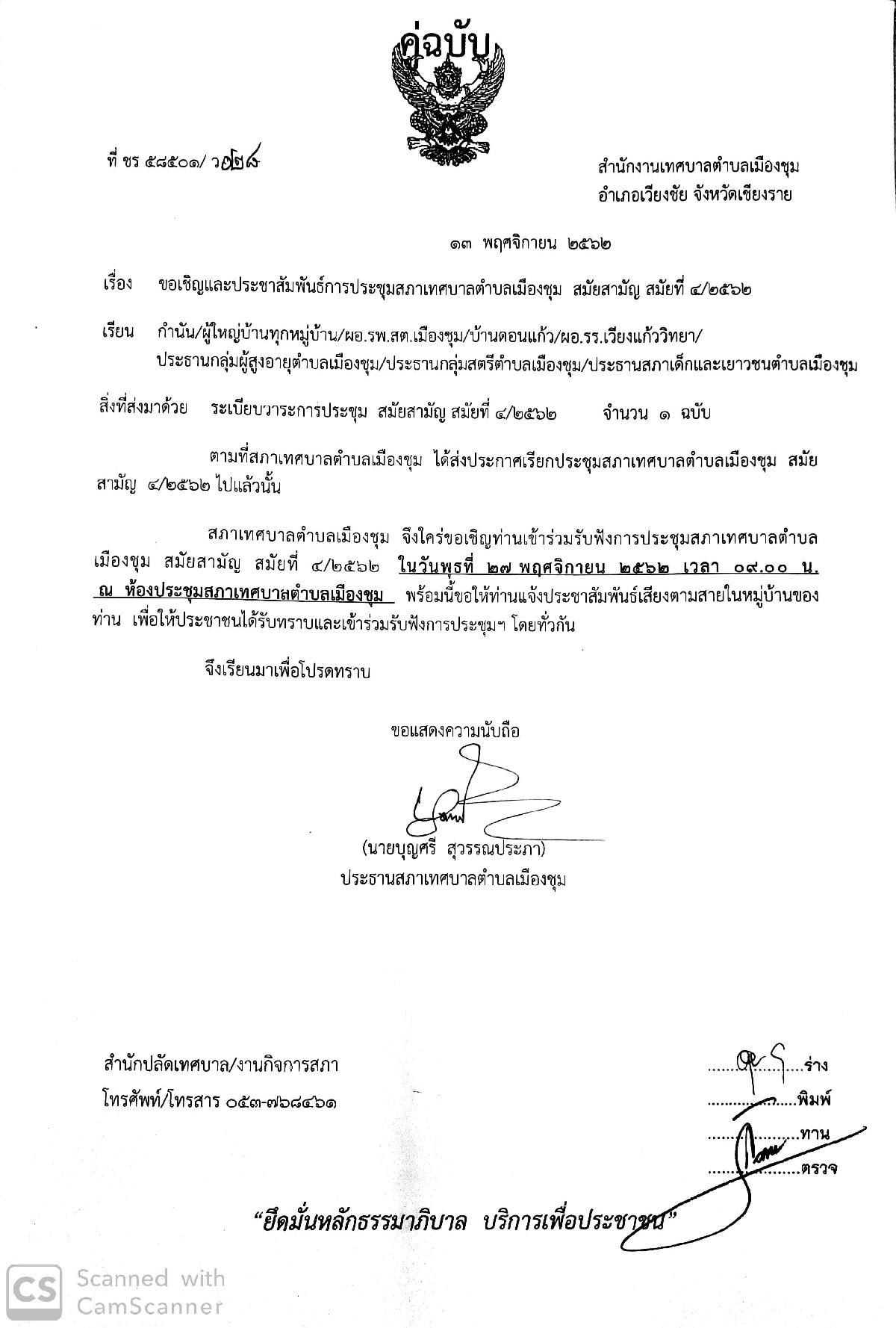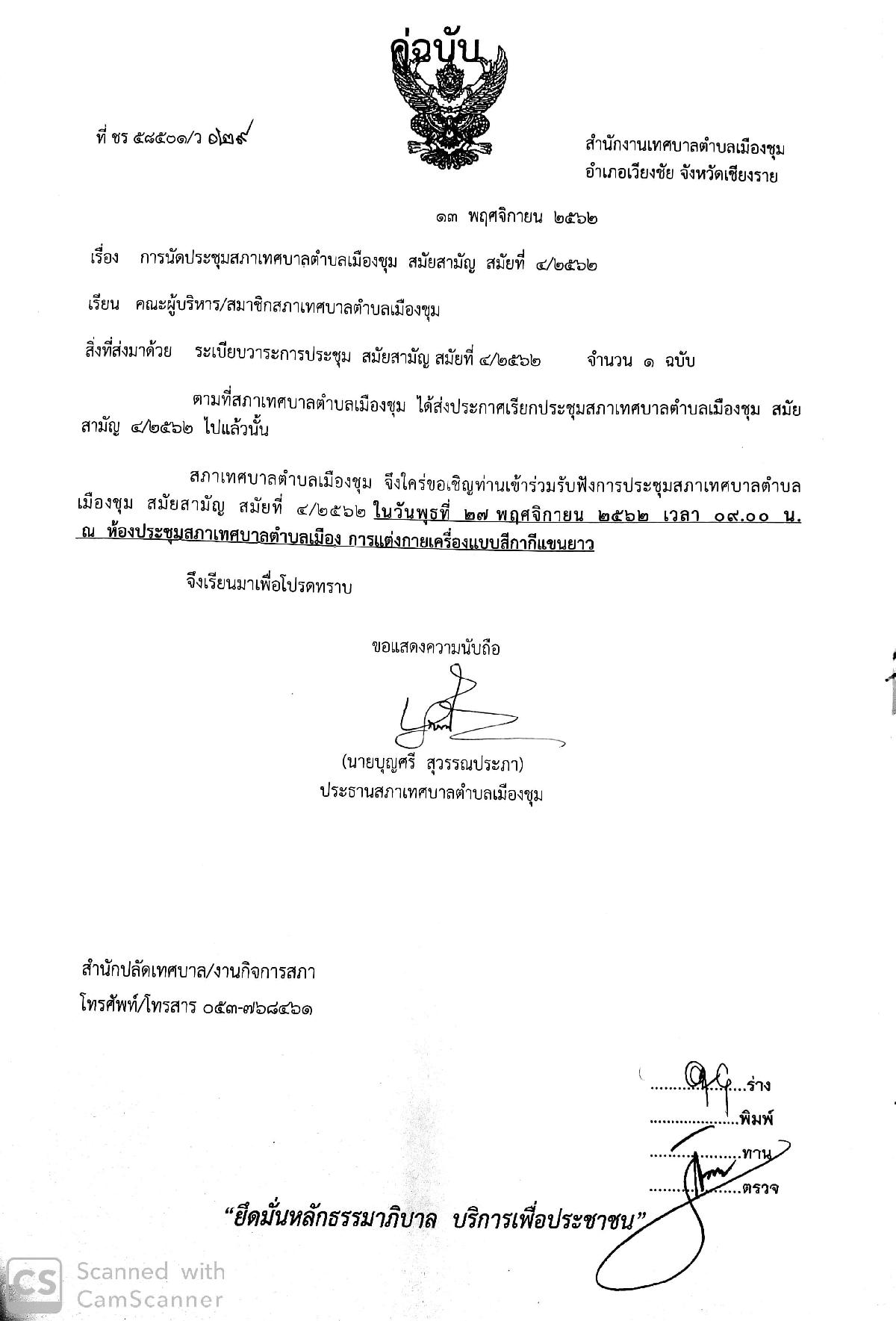 หนังสือเชิญประชุม ประจำปี พ.ศ.2562 เทศบาลตำบลเมืองชุม