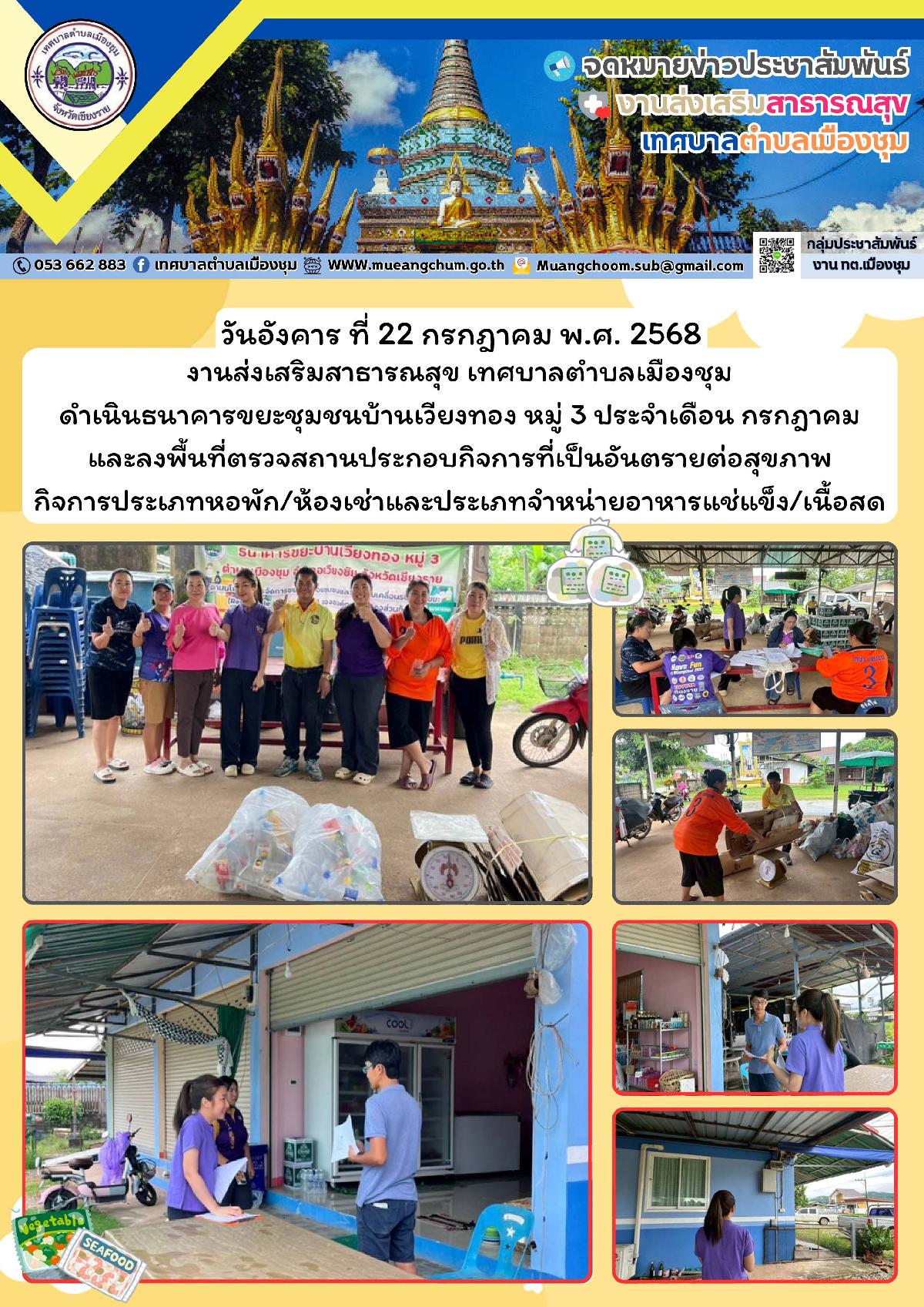 งานจัดเก็บและพัฒนารายได้ กองคลังเทศบาลตำบลเมืองชุม ได้ออกหน่วยบริการนอกสถานที่ ค่าธรรเนียมจัดเก็บขยะมูลฝอย ประจำปีงบประมาณ 2569 ณ หอประชุมหมู่ที่2 บ้านเวียงแก้ว