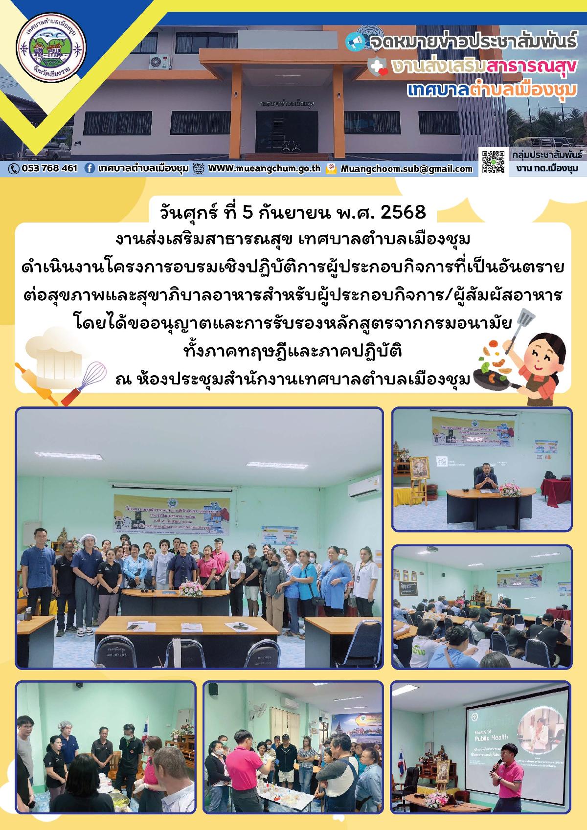 โครงการอบรมเรื่องควบคุม ป้องกัน และเฝ้าระวังไข้เลือดออก ดำเนินโครงการฯ โดย กลุ่ม อสม.ตำบลเมืองชุม สนับสนุนโดยกองทุนหลักประกันสุขภาพในระดับท้องถิ่นหรือพื้นที่เทศบาลตำบลเมืองชุม (สปสช.)