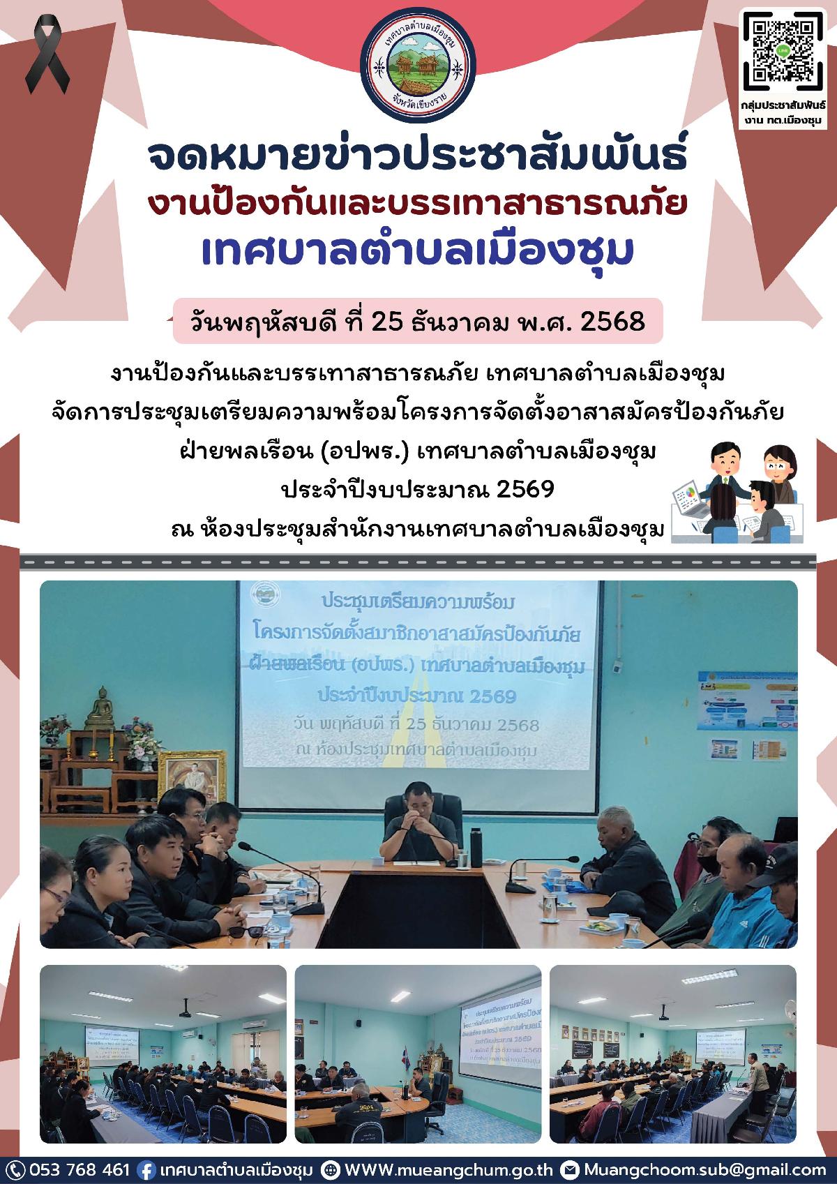 โครงการอบรมเรื่องควบคุม ป้องกัน และเฝ้าระวังไข้เลือดออก ดำเนินโครงการฯ โดย กลุ่ม อสม.ตำบลเมืองชุม สนับสนุนโดยกองทุนหลักประกันสุขภาพในระดับท้องถิ่นหรือพื้นที่เทศบาลตำบลเมืองชุม (สปสช.)