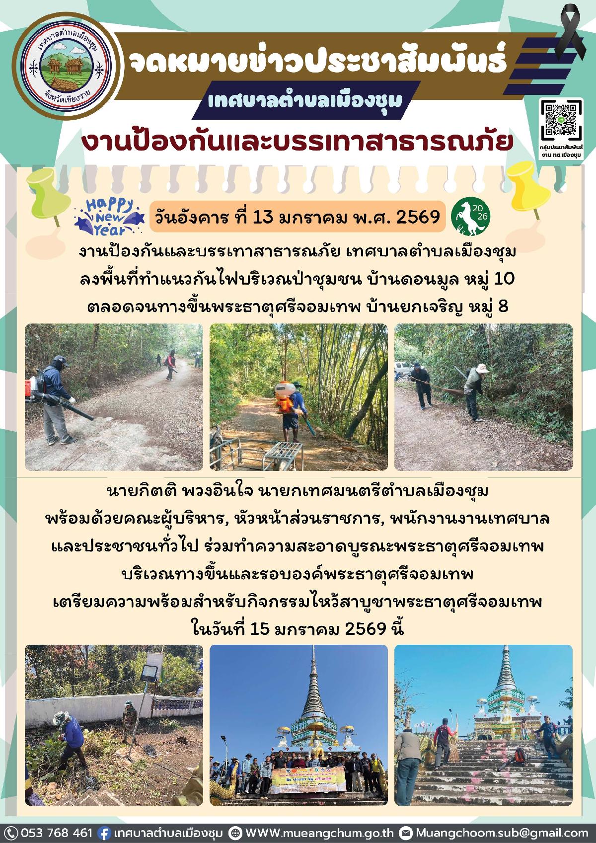 ทำแนวกันไฟบริเวณป่าชุมชน บ้านดอนมูล หมู่ 10 ตลอดจนทางขึ้นพระธาตุศรีจอมเทพ บ้านยกเจริญ หมู่ 8 และทำความสะอาดบูรณะพระธาตุศรีจอมเทพสำหรับกิจกรรมไหว้สาบูชาพระธาตุศรีจอมเทพ