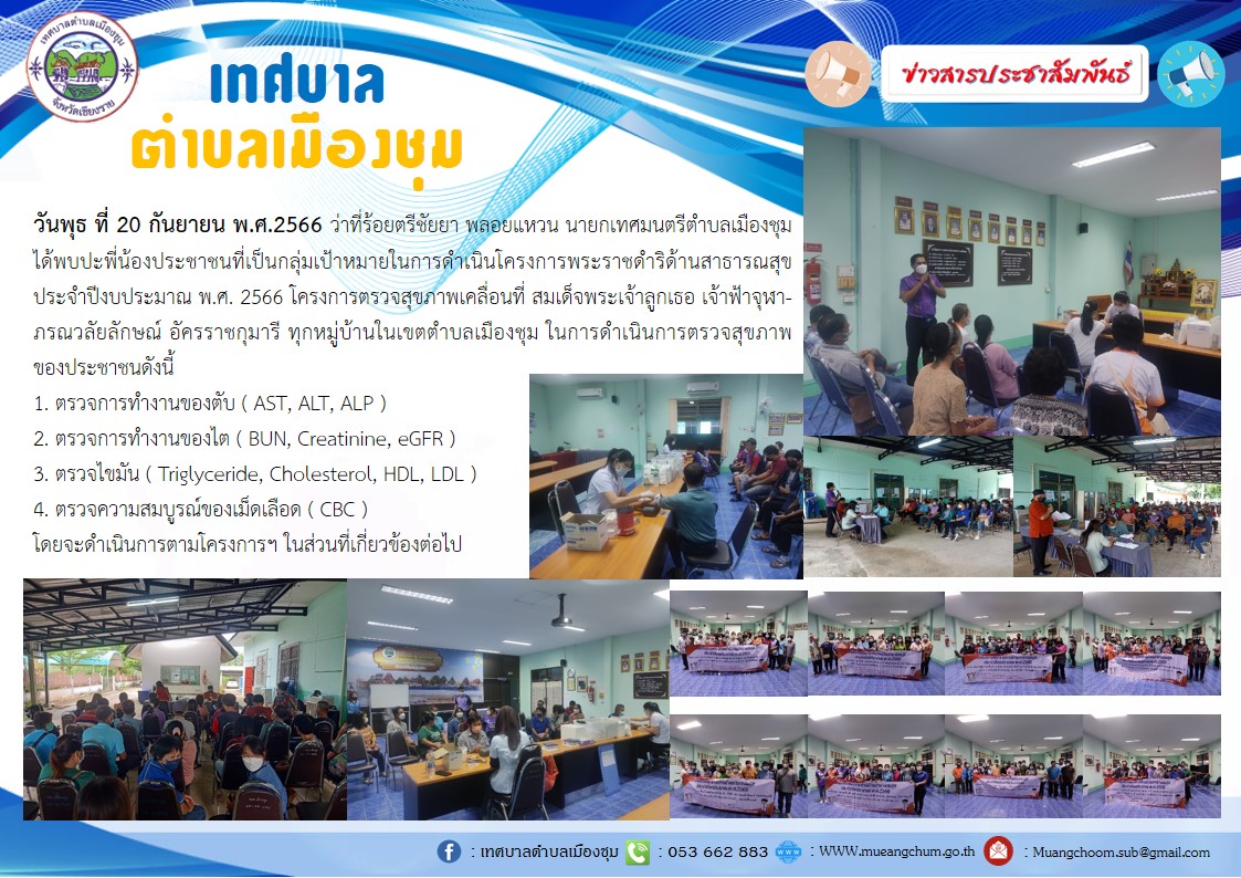 โครงการอบรมเรื่องควบคุม ป้องกัน และเฝ้าระวังไข้เลือดออก ดำเนินโครงการฯ โดย กลุ่ม อสม.ตำบลเมืองชุม สนับสนุนโดยกองทุนหลักประกันสุขภาพในระดับท้องถิ่นหรือพื้นที่เทศบาลตำบลเมืองชุม (สปสช.)