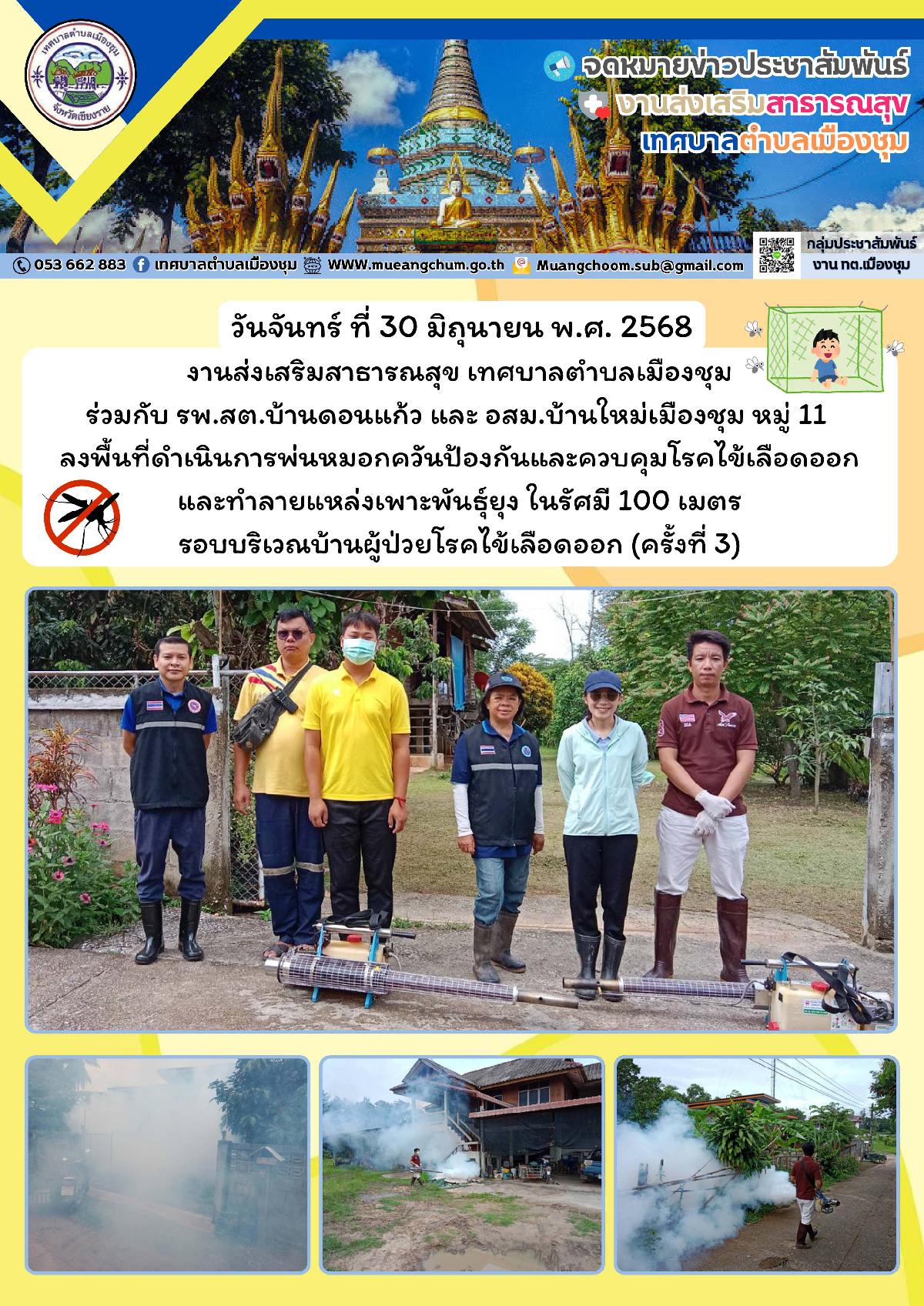 โครงการอบรมเรื่องควบคุม ป้องกัน และเฝ้าระวังไข้เลือดออก ดำเนินโครงการฯ โดย กลุ่ม อสม.ตำบลเมืองชุม สนับสนุนโดยกองทุนหลักประกันสุขภาพในระดับท้องถิ่นหรือพื้นที่เทศบาลตำบลเมืองชุม (สปสช.)