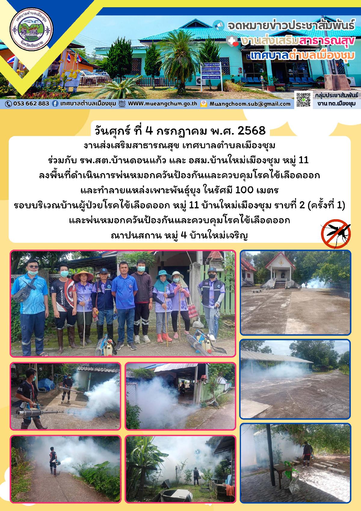 โครงการอบรมเรื่องควบคุม ป้องกัน และเฝ้าระวังไข้เลือดออก ดำเนินโครงการฯ โดย กลุ่ม อสม.ตำบลเมืองชุม สนับสนุนโดยกองทุนหลักประกันสุขภาพในระดับท้องถิ่นหรือพื้นที่เทศบาลตำบลเมืองชุม (สปสช.)