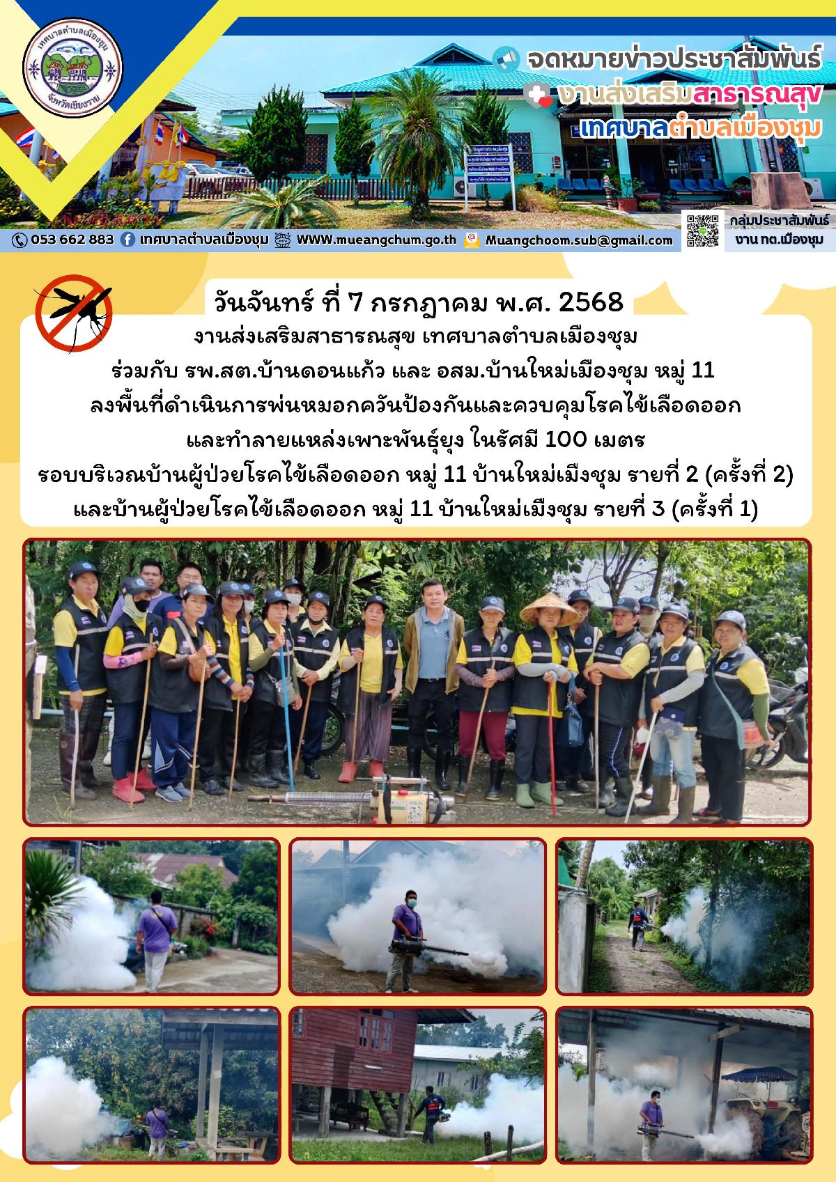 โครงการอบรมเรื่องควบคุม ป้องกัน และเฝ้าระวังไข้เลือดออก ดำเนินโครงการฯ โดย กลุ่ม อสม.ตำบลเมืองชุม สนับสนุนโดยกองทุนหลักประกันสุขภาพในระดับท้องถิ่นหรือพื้นที่เทศบาลตำบลเมืองชุม (สปสช.)