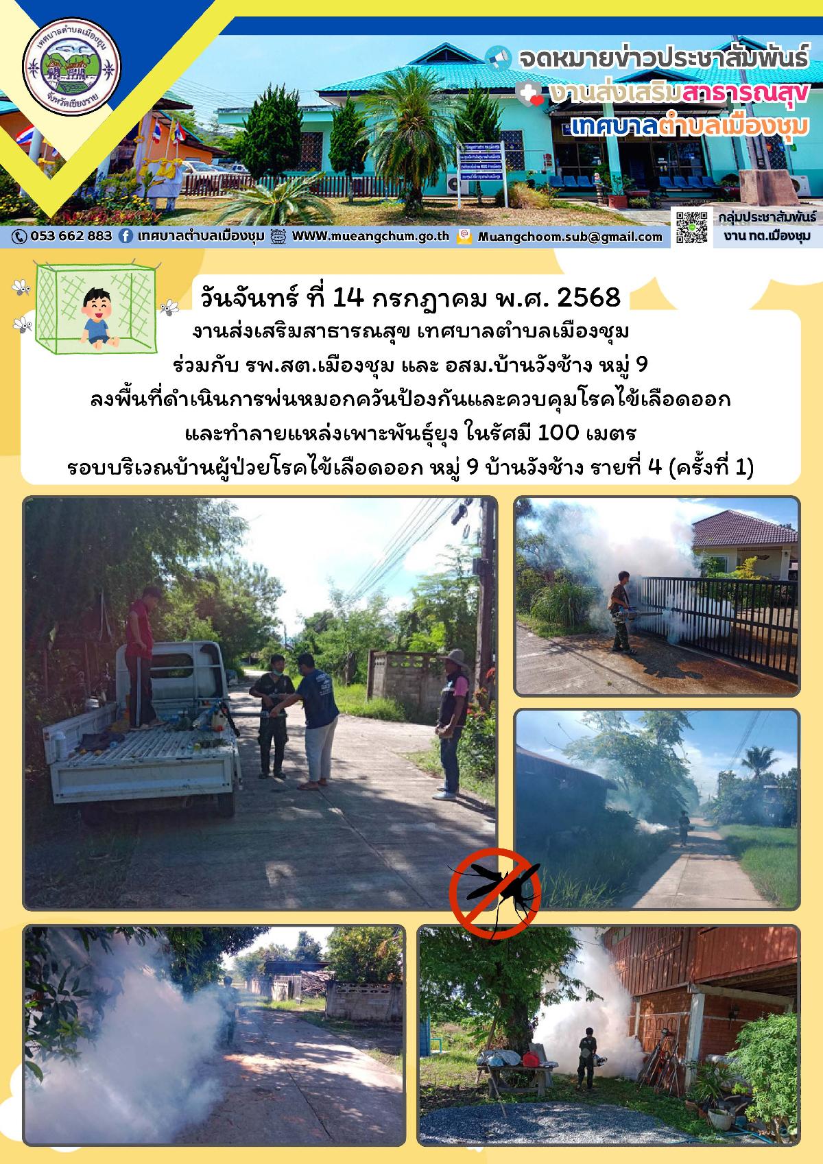โครงการอบรมเรื่องควบคุม ป้องกัน และเฝ้าระวังไข้เลือดออก ดำเนินโครงการฯ โดย กลุ่ม อสม.ตำบลเมืองชุม สนับสนุนโดยกองทุนหลักประกันสุขภาพในระดับท้องถิ่นหรือพื้นที่เทศบาลตำบลเมืองชุม (สปสช.)