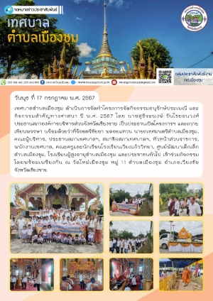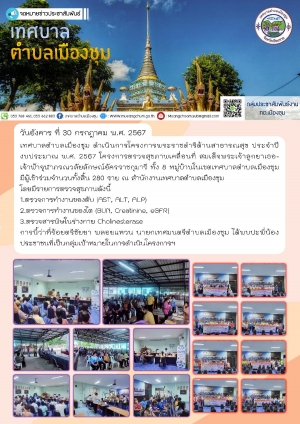 โครงการจัดกิจกรรมอนุรักษ์ประเพณี และกิจกรรมสำคัญทางศาสนา ปี พ.ศ. 2567 ณ วัดใหม่เมืองชุม หมู่ 11 ตำบลเมืองชุม อำเภอเวียงชัย จังหวัดเชียงราย