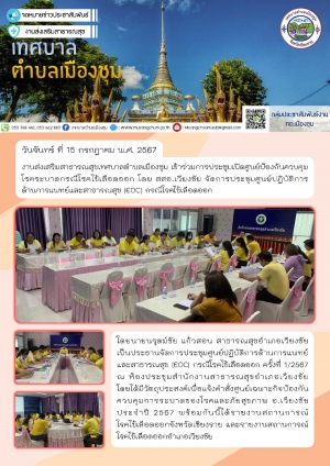 ประชุมศูนย์ปฏิบัติการด้านการแพทย์และสาธารณสุข (EOC) กรณีโรคไข้เลือดออก ครั้งที่ 1/2567 ณ ห้องประชุมสำนักงานสาธารณสุขอำเภอเวียงชัย