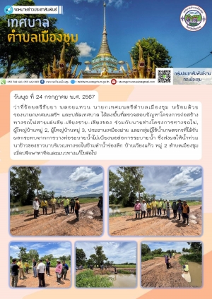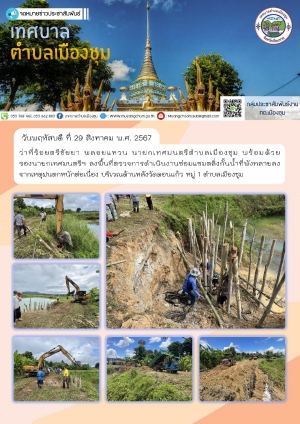 ลงพื้นที่ตรวจการดำเนินงานซ่อมแซมตลิ่งกั้นน้ำที่พังทลายลงจากเหตุฝนตกหนักต่อเนื่อง บริเวณด้านหลังวัดดอนแก้ว หมู่ 1 ตำบลเมืองชุม