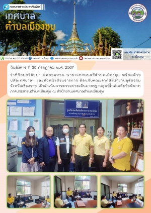ต้อนรับคณะจากสำนักงานยุติธรรมจังหวัดเชียงราย เข้าดำเนินการตรวจประเมินมาตรฐานศูนย์ไกล่เกลี่ยข้อพิพาทภาคประชาชนตำบลเมืองชุม ณ สำนักงานเทศบาลตำบลเมืองชุม