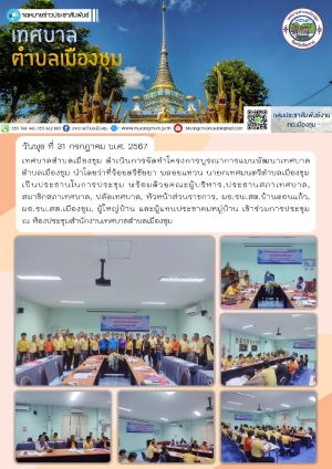 โครงการบูรณาการแผนพัฒนาเทศบาลตำบลเมืองชุม ณ ห้องประชุมสำนักงานเทศบาลตำบลเมืองชุม