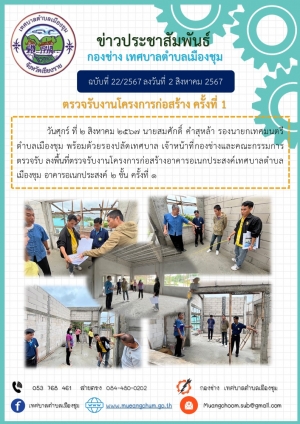ตรวจรับงานโครงการก่อสร้างอาคารอเนกประสงค์เทศบาลตำบลเมืองชุม