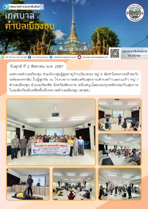 โครงการเฝ้าระวัง พลัดตกหกล้ม ในผู้สูงวัย ดำเนินโครงการฯ โดยกลุ่มผู้สูงอายุบ้านเวียงทอง หมู่ 3 สนับสนุนโดยกองทุนหลักประกันสุขภาพในระดับท้องถิ่นหรือพื้นที่เทศบาลตำบลเมืองชุม (สปสช.)