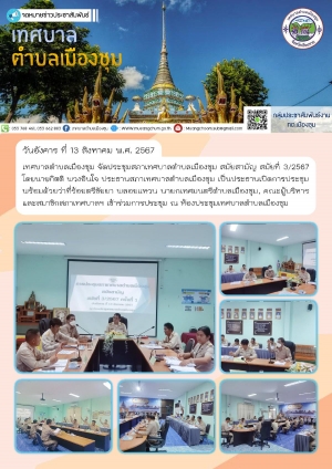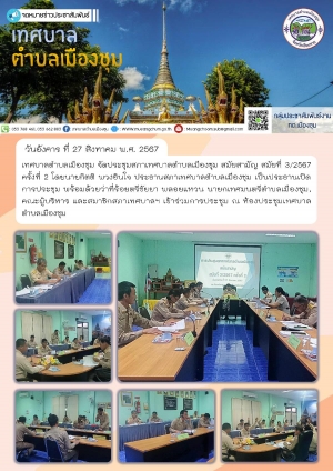 ประชุมสภาเทศบาลตำบลเมืองชุม สมัยสามัญ สมัยที่ 3/2567 ครั้งที่ 2 ณ ห้องประชุมเทศบาลตำบลเมืองชุม