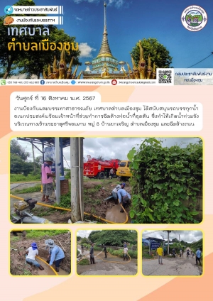 งานป้องกันและบรรเทาสาธารณภัย เทศบาลตำบลเมืองชุม ได้สนับสนุนรถบรรทุกน้ำอเนกประสงค์พร้อมเจ้าหน้าที่ช่วยทำการฉีดล้างท่อน้ำที่อุดตัน หมู่ 8 บ้านยกเจริญ