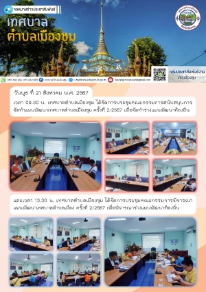 ประชุมคณะกรรมการสนับสนุนการจัดทำแผนพัฒนาเทศบาลตำบลเมืองชุม ครั้งที่ 2/2567 และจัดการประชุมคณะกรรมการพิจารณาพัฒนาเทศบาลตำบลเมือง ครั้งที่ 2/2567