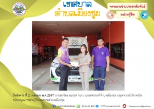 นายสมจิตร มะธุรส รองนายกเทศมนตรีตำบลเมืองชุม อนุเคราะห์บริจาคเงินสนับสนุนแก่หน่วยกู้ชีพเทศบาลตำบลเมืองชุม