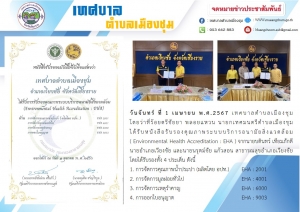 ได้รับหนังสือรับรองคุณภาพระบบบริการอนามัยสิ่งแวดล้อม ( Environmental Health Accreditation : EHA ) จากนายบดินทร์ เทียมภักดี นายอำเภอเวียงชัย และนายนรุตม์ชัย แก้วสอน สาธารณสุขอำเภอเวียงชัย