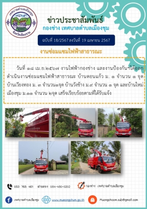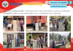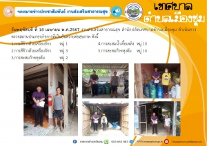 วันอังคาร ที่ 30 เมษายน พ.ศ.2567 งานป้องกันและบรรเทาฯ เทศบาลตำบลเมืองชุม ออกแจกจ่ายกระเบื้องหลังคาให้กับผู้ที่ได้รับความเสียหายจากเหตุวาตภัยพายุฤดูร้อน ม.1 ม.2 ม.3 และ ม.11