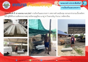 แจกจ่ายกระเบื้องหลังคาให้กับผู้ที่ได้รับความเสียหายจากเหตุวาตภัยพายุฤดูร้อน ณ หมู่ 8 บ้านยกเจริญ จำนวน 3 หลังคาเรือน
