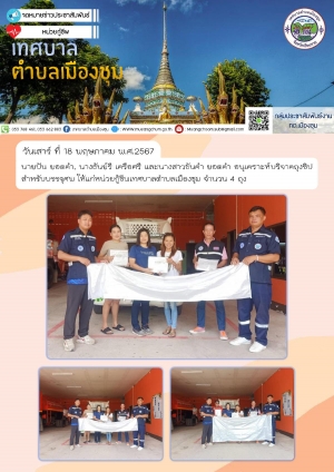 นายปัน ยอดคำ, นางธันย์รี เครือศรี และนางสาวขันคำ ยอดคำ อนุเคราะห์บริจาคถุงซิปสำหรับบรรจุศพ ให้แก่หน่วยกู้ชีพเทศบาลตำบลเมืองชุม จำนวน 4 ถุง