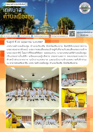 เทศบาลตำบลเมืองชุม อำเภอเวียงชัย จังหวัดเชียงราย จัดพิธีรับพระราชทานพระบรมฉายาลักษณ์ พระบาทสมเด็จพระเจ้าอยู่หัวที่ฉายกับสมเด็จพระนางเจ้าฯ พระบรมราชินี