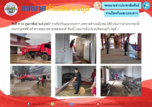 งานป้องกันและบรรเทาฯ เทศบาลตำบลเมืองชุม ได้ดำเนินการนำรถบรรทุกน้ำอเนกประสงค์ล้างทำความสะอาดลานจอดรถยนต์ ห้องน้ำ และภายในบริเวณวัดดอนแก้ว หมู่ที่ 1