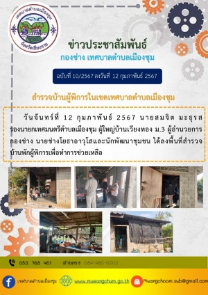 นายสมจิตร มะธุรส รองนายกเทศมนตรีตำบลเมืองชุม ผู้ใหญ่บ้านเวียงทอง ม.3 ผู้อำนวยการกองช่าง นายช่างอาวุโส และนักพัฒนาชุมชน ได้ลงพื้นที่สำรวจบ้านพักผู้พิการเพื่อทำการช่วยเหลือ