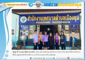 เทศบาลตำบลเมืองชุม ต้อนรับอาจารย์จากวิทยาลัยอาชีวศึกษาเชียงราย ที่ได้มาปฐมนิเทศนักศึกษาฝึกงาน ณ สำนักงานเทศบาลตำบลเมืองชุม