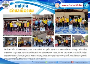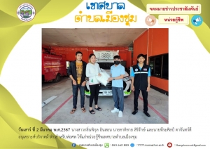 ว่าที่ร้อยตรีชัยยา พลอยแหวน นายกเทศมนตรีตำบลเมืองชุม รับเงินอุดหนุนโครงการปรับสภาพแวดล้อมและสิ่งอำนวยความสะดวกของผู้สูงอายุให้เหมาะสมและปลอดภัย ประจำปี 2567