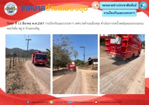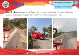 งานป้องกันและบรรเทาฯ เทศบาลตำบลเมืองชุม ดำเนินการรดน้ำลดฝุ่นละอองบนถนน ม. 8 ซอยวังอ้อและพ่นละอองน้ำเพิ่มความชุ่มชื้น ลดภาวะหมอกควัน ฝุ่นละออง PM 2.5