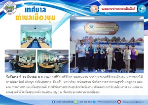 โครงการอบรมส่งเสริมสุขภาพ ผู้สูงอายุห่างไกลพลัดตกหกล้ม โดย กลุ่ม อสม. บ้านยกเจริญ ณ หอประชุมบ้านยกเจริญ หมู่ 8 สนับสนุนโดยกองทุนหลักประกันสุขภาพในระดับท้องถิ่นหรือพื้นที่เทศบาลตำบลเมืองชุม (สปสช.)