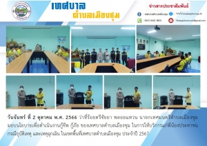 มอบนโยบายเพื่อดำเนินงานกู้ชีพ กู้ภัย ของเทศบาลตำบลเมืองชุม ในการให้บริการแก่พี่น้องประชาชน กรณีอุบัติเหตุ และเหตุฉุกเฉิน ในเขตพื้นที่เทศบาลตำบลเมืองชุม ประจำปี 2567