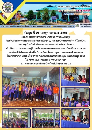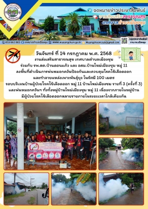 การประชาคมหมู่บ้านเพื่อวางมาตรการควบคุมและป้องกันการระบาดของโรคไข้เลือดออกในพื้นที่ร่วมกัน เพื่อควบคุมการระบาดอย่างเร่งด่วน ณ หอประชุมประจำหมู่บ้านใหม่เมืองชุม หมู่ 11