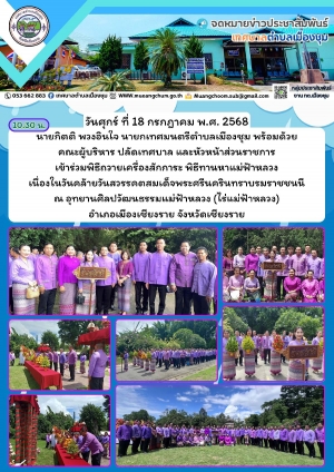 เทศบาลตำบลเมืองชุม เข้าร่วมพิธีถวายเครื่องสักการะ พิธีทานหาแม่ฟ้าหลวง เนื่องในวันคล้ายวันสวรรคตสมเด็จพระศรีนครินทราบรมราชชนนี ณ อุทยานศิลปวัฒนธรรมแม่ฟ้าหลวง (ไร่แม่ฟ้าหลวง)