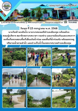 ลงพื้นที่ตรวจสอบพื้นที่เสี่ยงภัยน้ำท่วม และพื้นที่น้ำท่วมขัง พร้อมตรวจดูปริมาณน้ำตามลำน้ำ และอ่างเก็บน้ำในเขตเทศบาลตำบลเมืองชุม