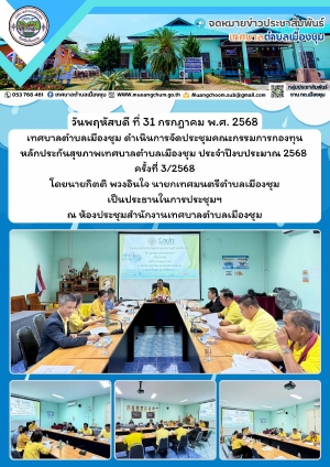 การประชุมคณะกรรมการกองทุนหลักประกันสุขภาพเทศบาลตำบลเมืองชุม ประจำปีงบประมาณ 2568 ครั้งที่ 3/2568