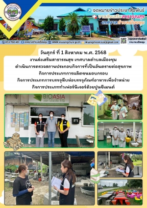งานส่งเสริมสาธารณสุข เทศบาลตำบลเมืองชุม ดำเนินการตรวจสถานประกอบกิจการที่เป็นอันตรายต่อสุขภาพ การผลิตขนมอบกรอบ, การบรรจุหีบห่อบรรจุภัณฑ์อาหารเพื่อจำหน่าย, ทำเฟอร์นิเจอร์ด้วยปูนซีเมนต์