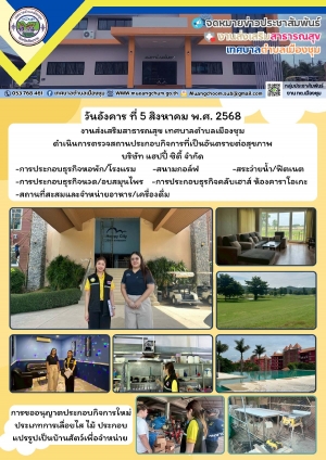 งานส่งเสริมสาธารณสุข เทศบาลตำบลเมืองชุม ดำเนินการตรวจสถานประกอบกิจการที่เป็นอันตรายต่อสุขภาพ บริษัท แฮปปี้ ซิตี้ จำกัด และการขออนุญาตประกอบกิจการใหม่