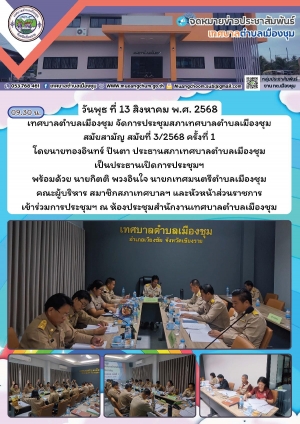 ประชุมสภาเทศบาลตำบลเมืองชุม สมัยสามัญ สมัยที่ 3/2568 ครั้งที่ 1