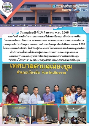 โครงการพัฒนาศักยภาพ คณะกรรมการ คณะอนุกรรมการ และคณะทำงาน กองทุนหลักประกันสุขภาพเทศบาลตำบลเมืองชุม ประจำปีงบประมาณ 2568