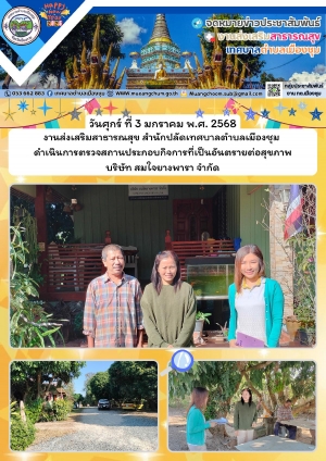 งานส่งเสริมสาธารณสุข สำนักปลัดเทศบาลตำบลเมืองชุม ดำเนินการตรวจสถานประกอบกิจการที่เป็นอันตรายต่อสุชภาพ แคบหมู ธีราภัทร