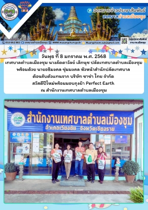 ต้อนรับตัวแทนจาก บริษัท ชาช่า ไทย จำกัด สวัสดีปีใหม่พร้อมมอบถุงผ้า Perfect Earth ณ สำนักงานเทศบาลตำบลเมืองชุม