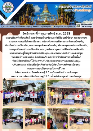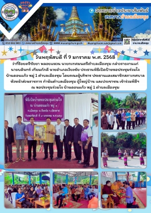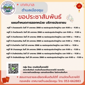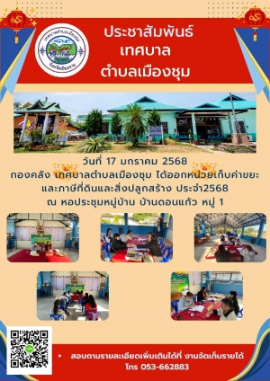 กองคลัง เทศบาลตำบลเมืองชุม ได้ออกหน่วยเก็บค่าขยะและภาษีที่ดินและสิ่งปลูกสร้าง ประจำ2568 ณ หอประชุมหมู่บ้าน บ้านดอนแก้ว หมู่ 1