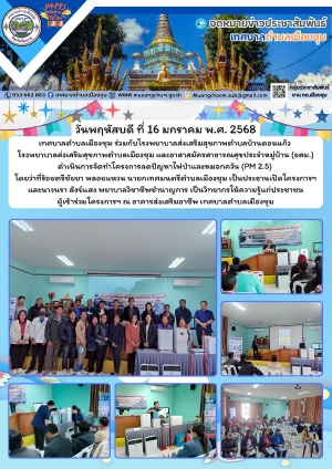 เทศบาลตำบลเมืองชุม ร่วมกับ รพ.สต.บ้านดอนแก้ว รพ.สต.เมืองชุม และอสม. ดำเนินการจัดทำโครงการลดปัญหาไฟป่าและหมอกควัน (PM 2.5) ณ อาคารส่งเสริมอาชีพ เทศบาลตำบลเมืองชุม