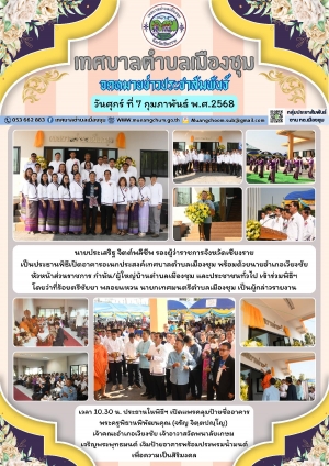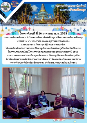 เทศบาลตำบลเมืองชุม ให้การต้อนรับประธานชมรม Strong-จิตพอเพียงต้านทุจริตจังหวัดเชียงราย ในการมานิเทศน์งานโครงการข้อตกลงคุณธรรม (MIU) ประจำปี 2568