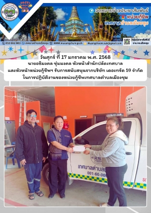 รับการสนับสนุนจากบริษัท เดอะทรัด 59 จำกัด ในการปฏิบัติงานของหน่วยกู้ชีพเทศบาลตำบลเมืองชุม