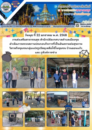 ดำเนินการตรวจสถานประกอบกิจการที่เป็นอันตรายต่อสุขภาพ วิสาหกิจชุมชนกลุ่มแปรรูปวัสดุเหลือใช้ในชุมชน บ้านดอนแก้ว และ ภูพิงค์การช่าง