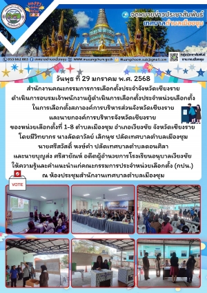 สำนักงานคณะกรรมการการเลือกตั้งประจำจังหวัดเชียงราย อบรมเจ้าพนักงานผู้ดำเนินการเลือกตั้งประจำหน่วยเลือกตั้ง ในการเลือกตั้งสภาและนายกองค์การบริหารจังหวัดเชียงรายของหน่วยเลือกตั้งที่ 1-8 ตำบลเมืองชุม