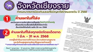 จังหวัดเชียงราย กำหนดมาตรการป้องกันและแก้ไขปัญหาไฟป่าหมอกควัน ปี 2568 ห้ามเผาในที่โล่งทุกชนิดโดยเด็ดขาด ตั้งแต่วันที่ 1 มีนาคม ถึง วันที่ 31 พฤษภาคม 2568